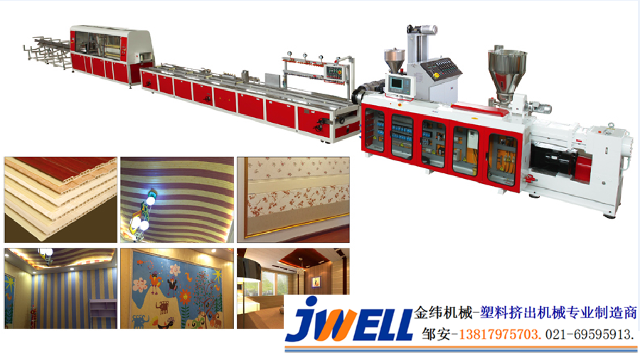 拆裝方便, 省時省力花色樣式種類繁多, 可以替代墻漆, 墻紙等傳統(tǒng)裝潢材料環(huán)保, 隔熱, 防潮, 防霉, 保溫, 防火, 隔音, 時尚, 美觀, 方便清潔金緯機械作為國內(nèi)領(lǐng)先的塑料擠出設(shè)備生產(chǎn)商, 順應(yīng)時代發(fā)展潮流, 現(xiàn)隆重向市場推出PVC快裝墻板/軟晶墻板/竹木纖維集成墻板生產(chǎn)線