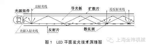 導光板的原理:當光線射到各個導光點時,反射光會往各個角度擴散,然后破壞反射條件由導光板正面射出。通過各種疏密、大小不一的導光點,可使導光板均勻發光。反射片的用途在于將底面露出的光反射回導光板中,用來提高光的使用效率。